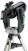 Nejpokročilejší řadou naváděných azimutálních montáží jsou uzavřené vidlicové montáže CPC™. Do nich jsou osazeny opět dalekohledy Schmidt-Cassegrainovy konstrukce o průměrech 8”, 9,25” a 11”, všechny vybaveny StraBright® XLT reflexní úpravou. Ta zajišťuje bezkonkurenčně nejmenší ztráty světla při průchodu optickým systémem. Montáže jsou vybaveny zabudovaným přijímačem GPS, odpadá tedy nutnost zadávat zeměpisné souřadnice a čas, oba údaje si dalekohled zjistí z družic. I ustavení je výrazně jednodušší. Pět různých způsobů ustavení obsahuje i metodu GPS Alignment, která v podstatě dalekohled ustaví zcela sama. Vidlicové montáže jsou velmi tuhé a pro vizuální pozorování si dnes jen těžko lze představit komfortnější dalekohled. Stále ještě platí, že jde o dalekohledy přenosné tedy do terénu, i když u 11” dalekohledu je nutno počítat s hmotností dalekohledu s vidlicí okolo 28kg. Montáže lze pořízením paralaktického klínu upravit na astrofotografické, i když tuhost systému klesne. Montáže jsou vybaveny jak autoguider portem tak elektronickou korekcí periodické chyby tzv. PEC. Celestron CPC 1100 tedy SCT 280/2800mm je dnes poměrem cena/výkon nejvýhodnějším „velkým“ amatérským dalekohledem na trhu.